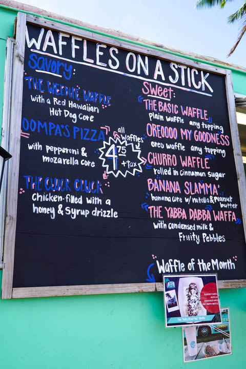 Another mainstay at the food cart park on the North Shore, Ty’s Beach Bus serves up Instagram-worthy waffles on a stick and a huge menu of homemade sodas. He offers some special recipe waffle sticks and DIY concoctions. We chose an oreo waffle with chocolate sauce and icing sugar. It was delicious!! My mom and I shared one stick and it was a perfect little snack before lunch.