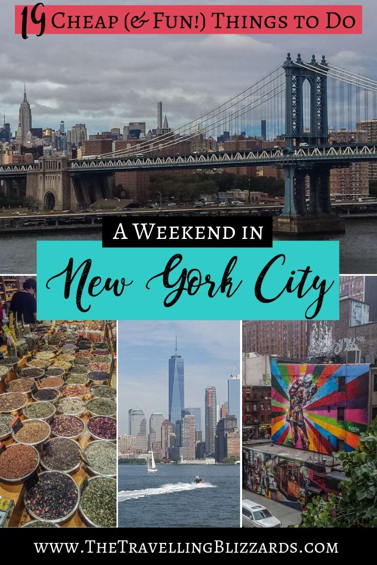 When visiting New York City it’s easy to get overwhelmed at the prospect of what to do, especially as a budget traveller! NYC is hardly known for being a cheap city. But after visiting twice for under $25usd/day (not including accommodation-that was about $70usd/night thanks to airbnb!) for both of us to eat, drink and enjoy our days, we realized we found quite a few budget options! So here’s a (no doubt incomplete) list of cheap things to do during your weekend in New York City.
